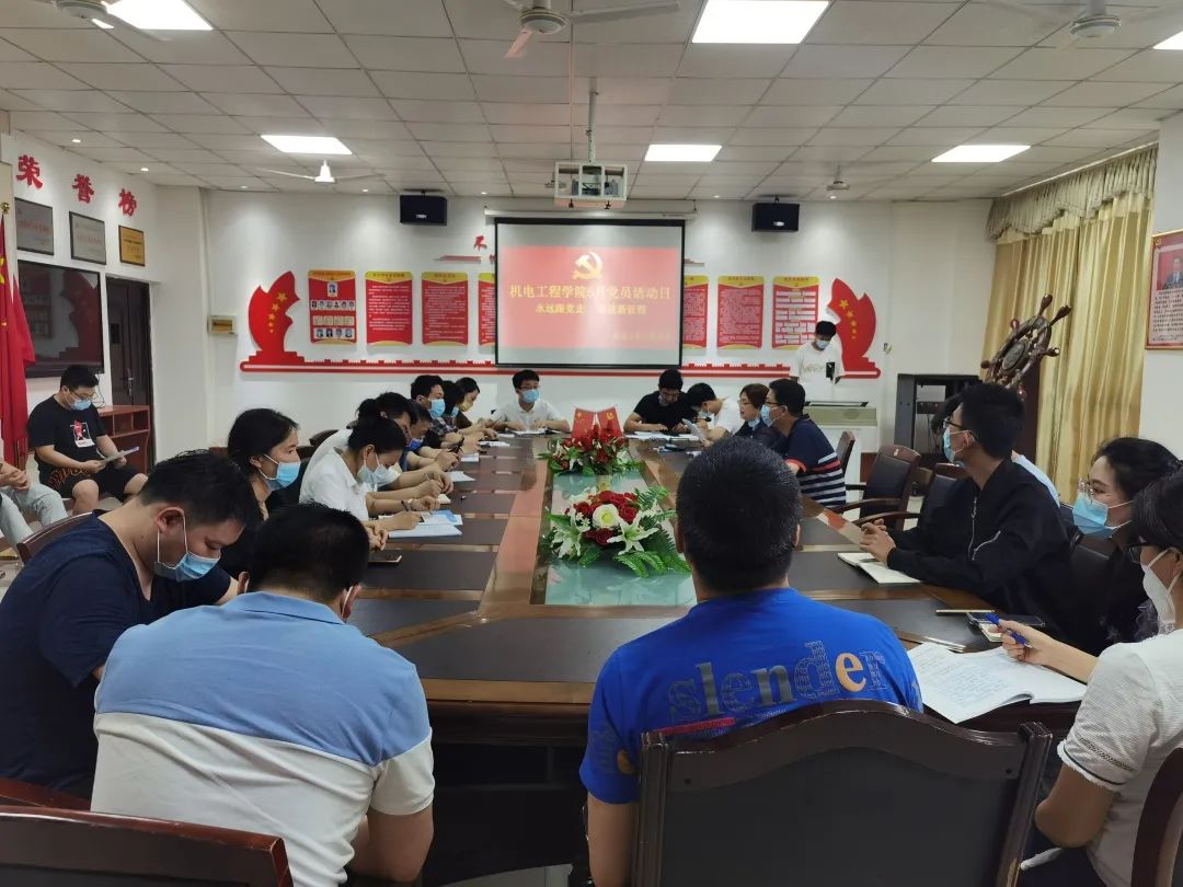 2022年6月8日,机电工程学院党委在机电大楼224会议室组织开展六月份党员活动日。参加本次活动的有机电工程学院党委书记刘国珍、机电工程学院副院长李柯、党委委员、支部书记及全体师生党员。会议由党委书记刘国珍主持。