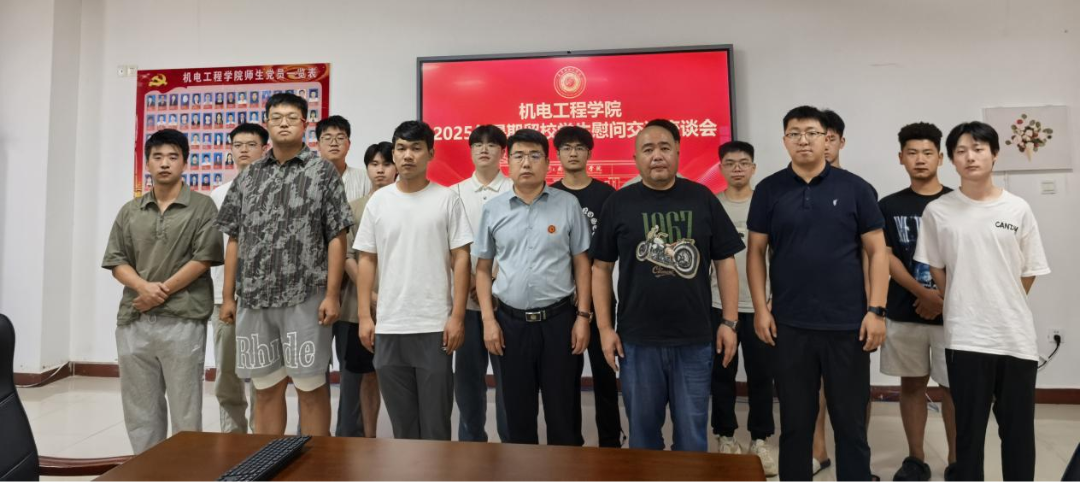 2025年8月5日上午,机电工程学院召开了暑假留校学生慰问交流座谈会。本次会议旨在关心慰问暑假期间留校备战考研和参加勤工助学的学生,了解他们的学习和生活情况,为他们提供必要的帮助和支持。学院党委书记苗士光、副院长陈明泉以及值班老师和10余名留校学生代表参加了此次座谈会。